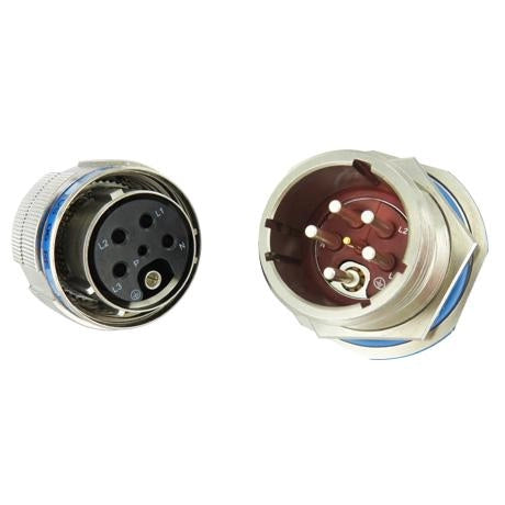 The Amphenol Socapex Powersafe – VG96944 is a rugged circular connector designed for high-power applications up to 1000V in demanding military and industrial environments. Fully compliant with VG96944 standards, it incorporates user safety features such as first mate/last break and last mate/first break technology, IP2X protection on the socket side, and IP68 sealing when mated (2 meters for 2 hours). Available in 7 contact arrangements for both three-phase and single-phase applications, it features TemperGrip socket contacts and high-current pins in sizes 8 and 4. Offered in multiple materials and platings, including RoHS and REACH compliant versions with J class (Tin Zinc) qualified under VG96944, the Powersafe connector is trusted in C5ISR, ground vehicles, military avionics, missiles, and naval systems.