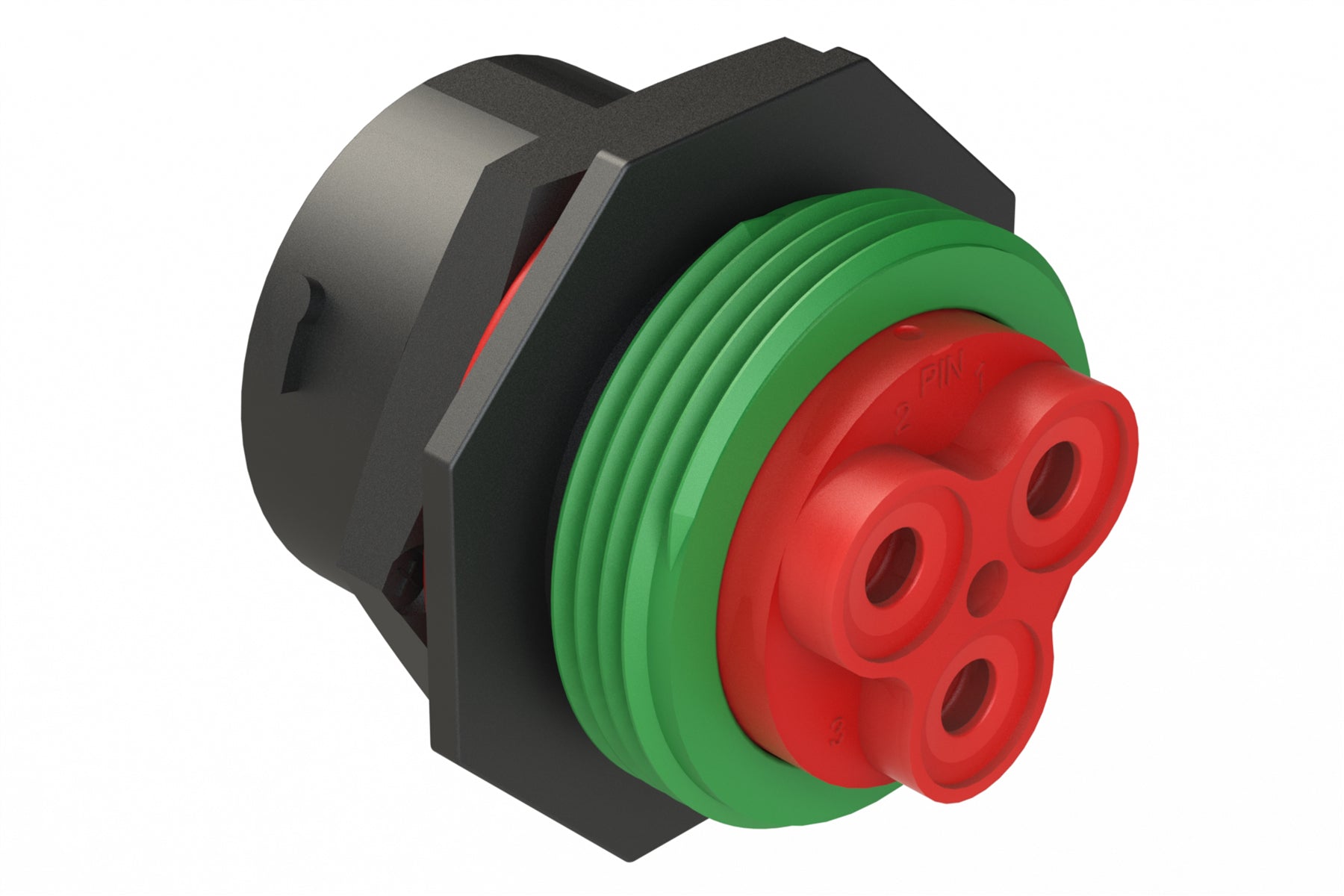 AHDP07-24-03PNC-WTAC031 3 Position Receptacle, Pin, Shell Size 24, Keyed C, 100A, 1000V, Sealed Panel Mount, Normal Diameter Seal (Green Adapter), Wide Thread Adapter