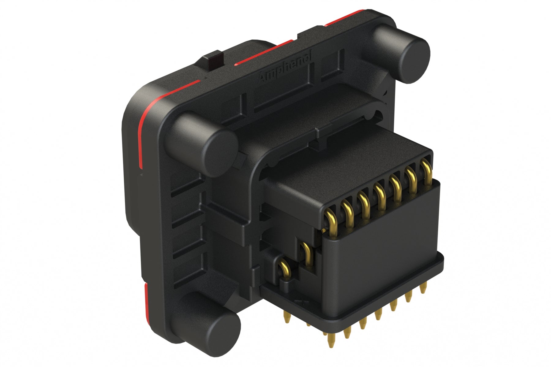 26 Position PCB Receptacle with Sealed Flange, Right Angle, Pin, Contact Size 20, Keyed B, Self-Threading, Black