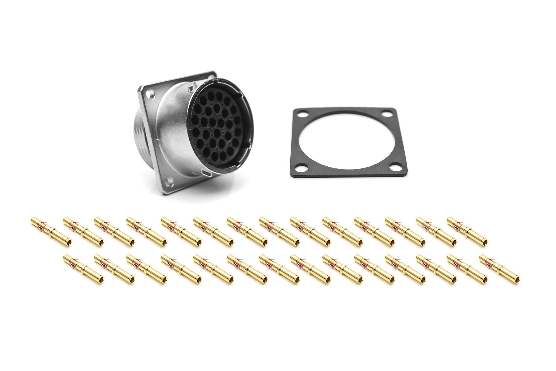 Receptacle Kit, Square Flange, 28 Position, Female, Shell Size 20, Silicone Seal, with Machined Gold Contacts, Size 16 (18-16AWG), Gasket, IP69K